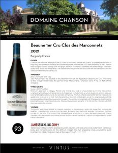 Domaine Chanson Beaune Clos de Marconnets 1er Cru 2021 Tech Sheet