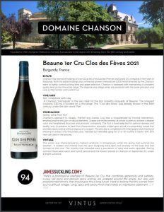 Domaine Chanson Beaune Clos de Feves 1er Cru 2021 Tech Sheet