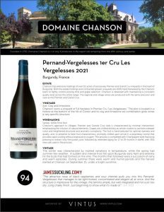 Domaine Chanson Pernand-Vergelesses 1er Cru Les Vergelesses 2021 Tech Sheet