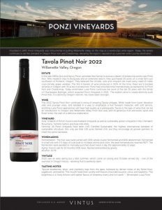 Ponzi Tavola Pinot Noir 2022 Tech Sheet