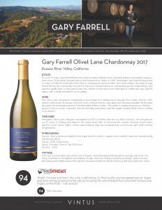 Gary Farrell Olivet Lane Chardonnay 2017 (94 WS)
