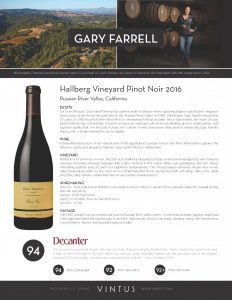 Gary Farrell Winery Hallberg Pinot Noir 2016 (94 DE)