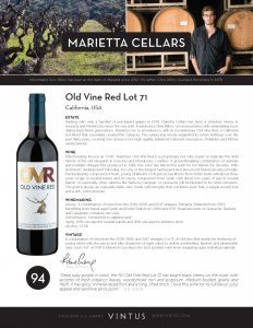 Marietta Cellars Old Vine Red Lot 71 Tech Sheet