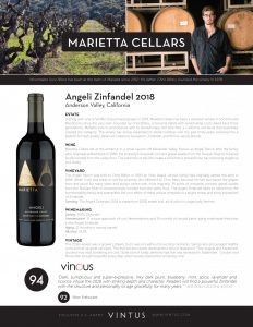 Marietta Cellars Angeli Zinfandel 2018 Tech Sheet