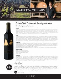 Marietta Cellars Game Trail Cabernet Sauvignon 2018 (94+ WA)