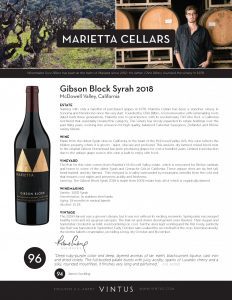 Marietta Cellars Gibson Block Syrah 2018 (96 WA)