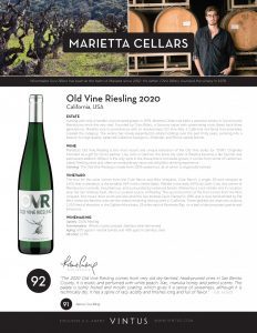 Marietta Cellars Old Vine Riesling 2020 (92 WA)