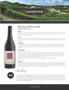 Sandrone Barbera d’Alba 2018 Tech Sheet