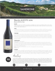 Sandrone ALESTE 2016 Tech Sheet