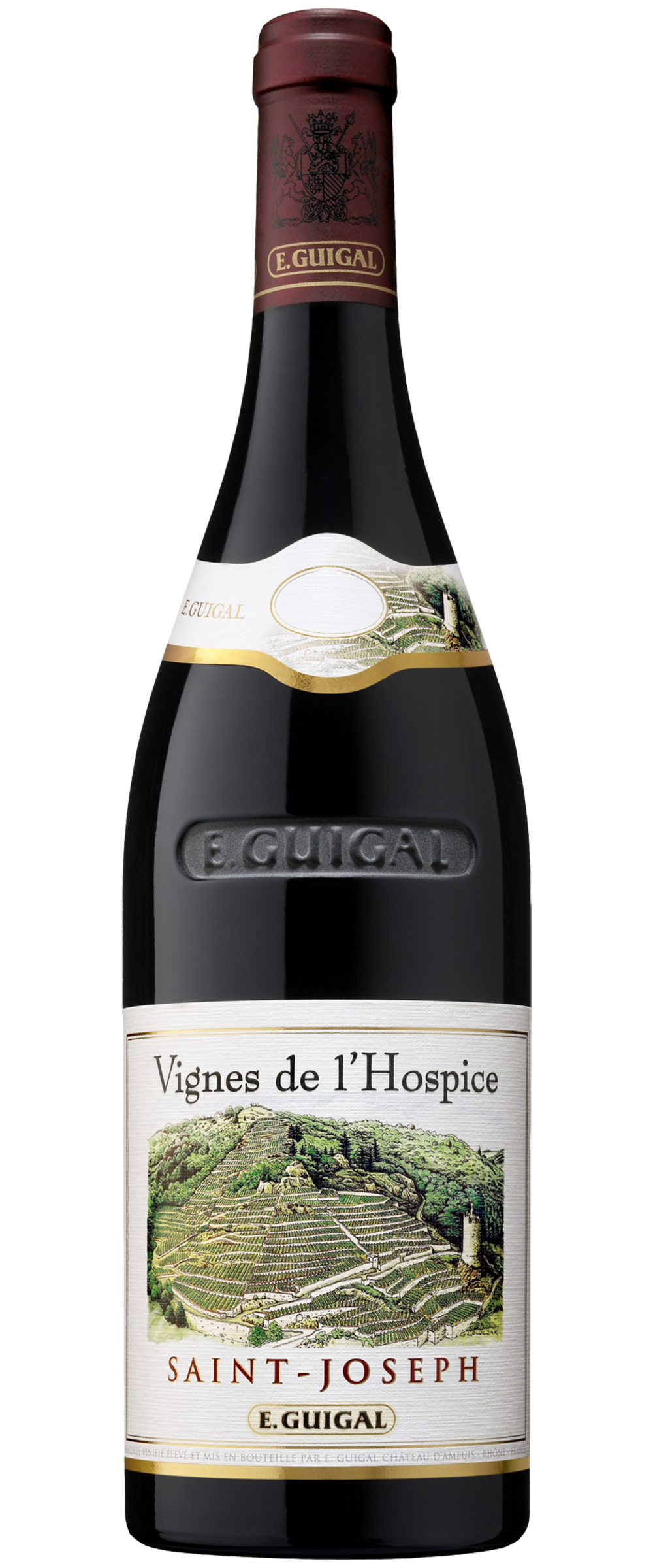 Guigal’s Vignes de l’Hospice is one of the finest sites in the Northern Rhone Valley. This steeply terraced vineyard used to be divided into three, but Guigal now owns majority of this parcel in order to restore perception of Saint-Joseph as an appellation of utmost quality. In fact, Guigal is often asked when they will produce a fourth “LaLa,” and their response is that their fourth single vineyard phenomenon of the Northern Rhone is already being produced: the Vignes de l’Hospice.